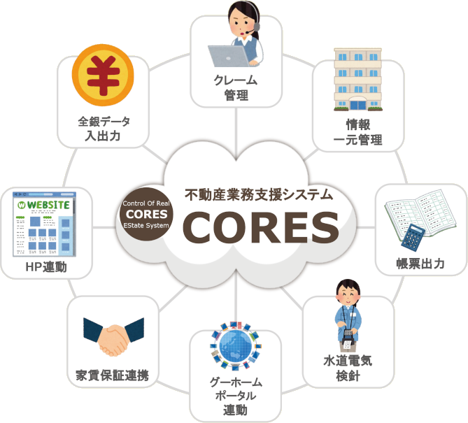 コアーズはクラウドを活用した中小零細企業向けの不動産管理システムで、不動産会社のホームページと連動し、スマホやタブレットなどで24時間、物件情報の更新ができる。登録物件が空室になれば、自動的にホームページが更新されるほか、入居希望者にメールを自動送信する。さらに、家主の情報や入居情報などを事前に登録することで口座引き落としの確認などの請求関連業務も可能だ。